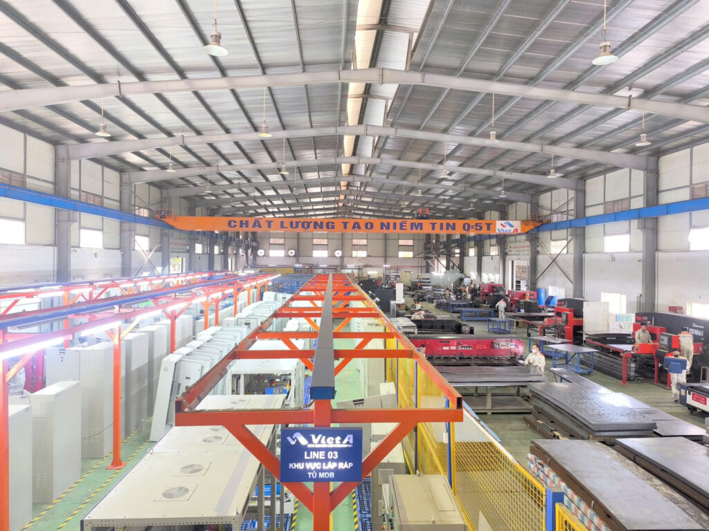 Tủ điện được sản xuất tại xưởng với hệ thống máy móc hiện đại, linh kiện chính hãng, đảm bảo độ chính xác cao.